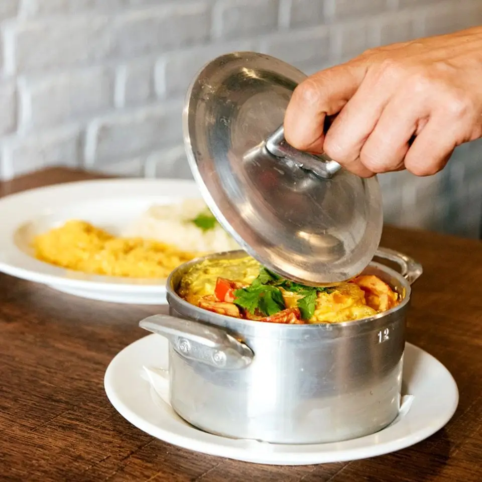 Aberto desde 1981, é um clássico em Lisboa quanto o assunto é cozinha brasileira. A decoração alegre e expressiva permanece, mesmo depois da remodelação recente que trouxe nova elegância a um espaço sempre com ambiente colorido. Focado na comida baiana, sem esquecer outras paragens deste variado país, o Comida de Santo (Calçada Engenheiro Miguel Pais, 39, Lisboa. Tel. 213963339) prolonga, à mesa, o samba no sabor intenso: comece com os Bolinhos de feijoada ou os de os de Mandioca com palmito (€1,50 cada), ideais com uma cerveja fresquinha, a Casquinha de siri (€6) ou a Mandioca frita (€3). Prossiga com a Moqueca ou o Bobó de camarão (€17 e €16 respetivamente), a Feijoada (€14), ou o Escondidinho de cerne de sol (€15). Os vegetarianos podem optar pela Moqueca de Palmito (€13), o Ensopadinho de vegetais ou a feijoada vegetariana (ambos a €12). Não saia sem provar um dos emblemas da casa, “o melhor quindim da Europa” (€6) ou o Gelado de lima com cachaça (€5). Acompanhe com as incontornáveis caipirinhas ou sumos tropicais.